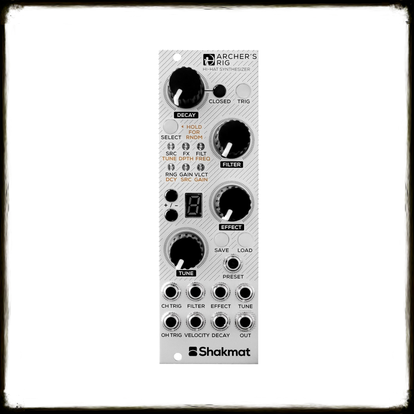 The Archer's Rig boasts a quiver full of digital noise generation algorithms, offering sharp and cutting sound sources for hi-hat and high-pitched percussion synthesis. As our archer has more than one string to its bow, he processes its source material through a versatile analog chain featuring filters, distortion, and a VCA. Randomizer, a memory of 96 presets, and compatibility with select bus protocol round out the Archer's capabilities, making it a powerful tool for creating a vast and personalized sonic palette.