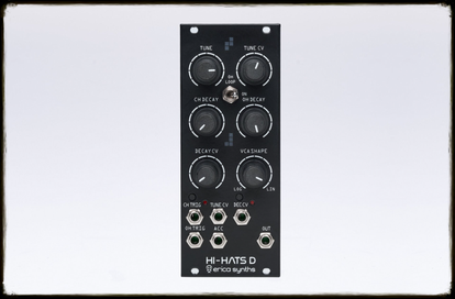 - External audio input lets you synthesise hihats from virtually any sound source (Jupiter Storm, vcNOIZ, etc.)