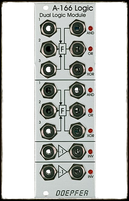 Applications: combination of digital signals of the A-100 (e.g. gates, clocks, triggers), e.g. to obtain "gated" clocks or certain rhythmic patterns.