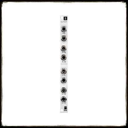 • Dual 2 inputs adder/differentiator for CV or audio (For example if the first input is 3v and the second output is 1v, sum output provides 4v and dif output 2v)